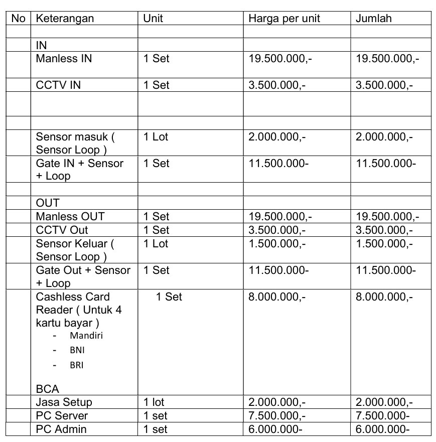 Penawaran peralatan pengelolaan parkir 2026: